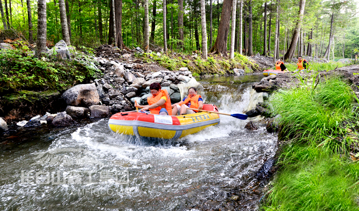 墨龙湾景区内的河道宽4-6米、河道长5.9公里,由两条河汇聚在一起所形成,水量丰沛,河水温婉缠绵,河道镶嵌在红叶林的林间,河水清澈,河两岸大树参天,鲜花怒放,枯木倒卧,呈现最古朴自然的原始风貌。水、石、树溶为一体,每到夏季山风徐徐,松涛阵阵,花草起伏,馨香四溢,犹如一幅幅和谐生动的自然画卷。墨龙湾森林穿越漂流短漂河道长约2.6公里,漂程50分钟左右,迎着细碎的阳光,追着花中的蝶儿,在清澈的河流中,乘坐皮筏,手挥木浆,欢笑声沿着河流,穿透森林,人在水中漂,如在画中游,在自然生态的环境中享受一流水质的无穷魅力,令人流连忘返。