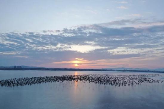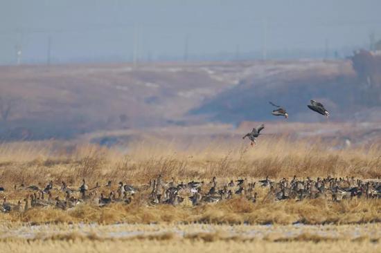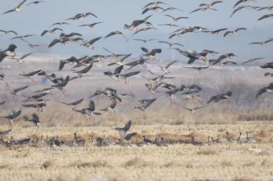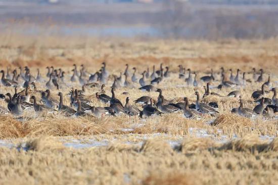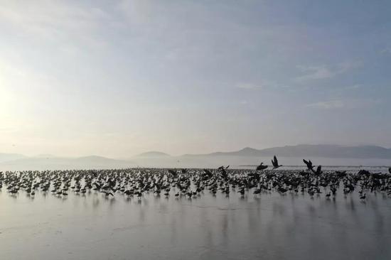 雁如潮涌!30万只大雁经延边珲春敬信湿地南迁
