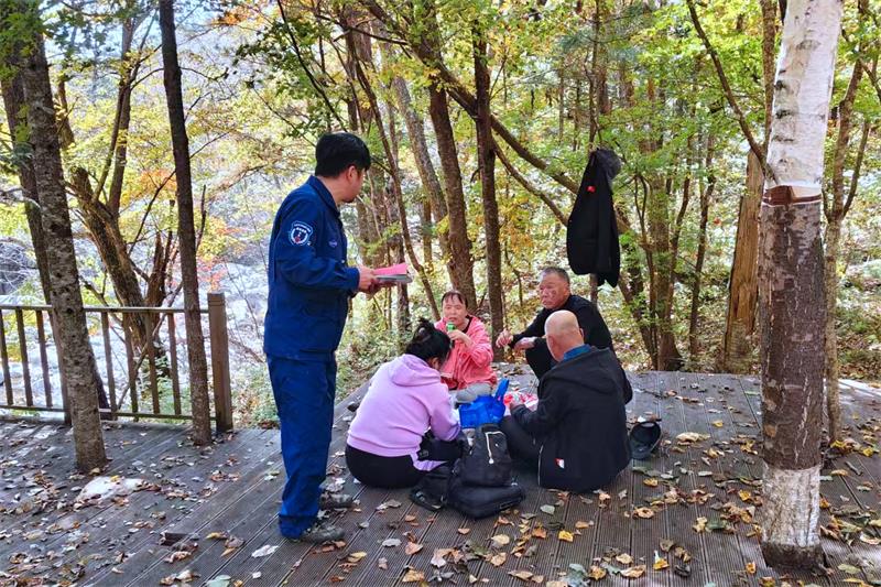 区域协作保游客安全 公司旅游服务开发处积极构建区域协同合作机制,联合汪清森林公安分局交通管理大队、当地森林派出所、复兴镇等单位,围绕宣传推介、防火安全等重点工作开展联合行动。组建联合巡逻队伍,加大景区巡查力度,向游客发放防火宣传资料,严禁携带火种进入林区,形成“齐抓共管、协同发力”的工作格局,为游客营造安全、稳定、有序的游览环境。