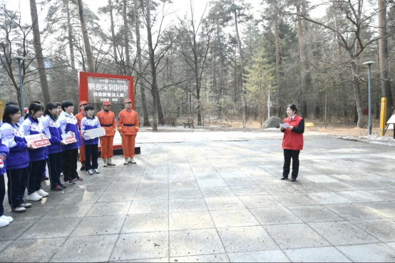 3月25日,白河林业有限公司审计处(法务风控处)、营林处、安全防火处、森林消防特勤大队、保护地管理中心携手白河林区基层法院、东北师范大学长白山实验中学,为在校学生打造一场集防火安全、生态法治、古树保护于一体的沉浸式实践活动。![]() 活动现场,百年美人松苍劲挺拔,成为最生动的自然教具,同学们怀揣着对自然的好奇与敬畏,开启了这场别样的研学之旅。白河林业有限公司森林消防特勤大队副大队长吕祥程率先开展森林防火专题宣讲,他结合林区森林防火工作实际,向同学们讲解了森林作为人类宝贵财富的重要意义,明确严防森林防火不仅关乎森林资源安全,更与人民群众生命财产安全紧密相连,是全社会需要共同承担的责任。![]() 白河林区基层法院蒲公英生态法治宣传队成员、青年法官檀义男用趣味案例解读野生动植物保护相关法律法规,说明破坏生态环境、损毁珍稀林木需承担的法律责任,将法治知识与自然保护紧密结合,使同学们在轻松的氛围中树立“依法护生态、守长白”的理念,明白法律是守护长白山生态的坚实屏障。