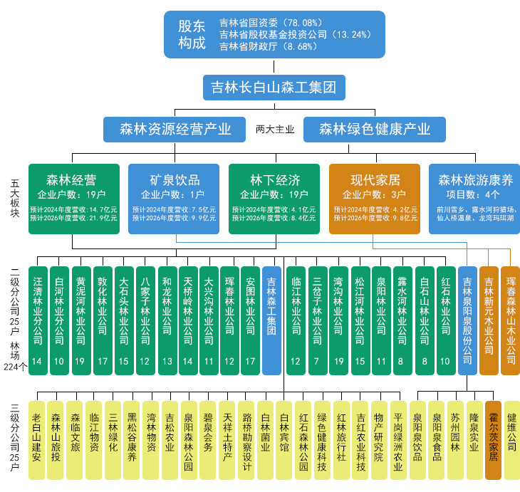 /按照省委、省政府关于两大森工集团战略性重组和专业化整合部署要求,2023年12月15日,吉林长白山森工集团由原长白山森工集团、吉林森工集团正式组建成立,是以森林资源经营和森林绿色健康产业为主业的省属大型林业产业集团。