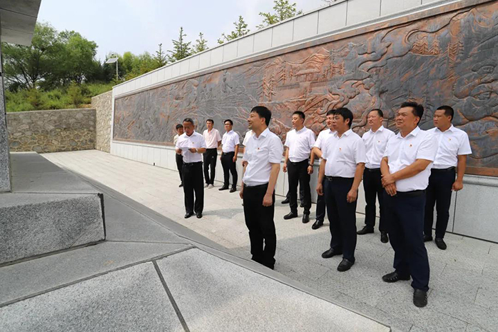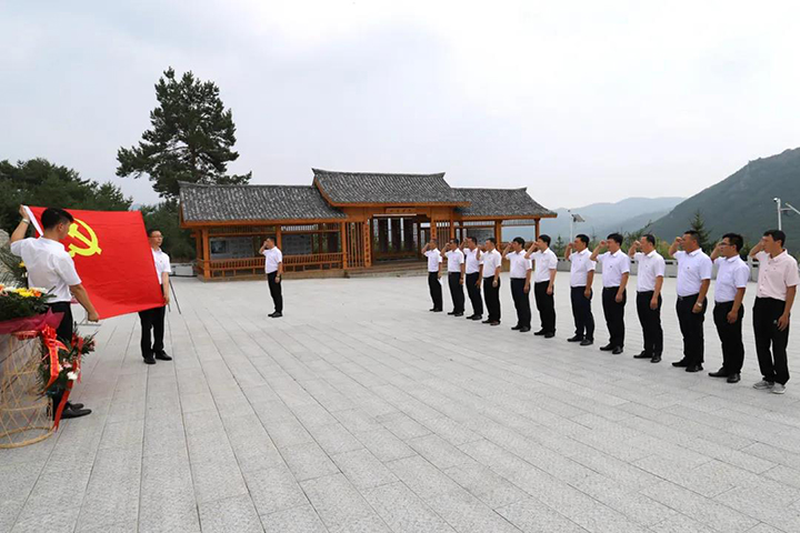 在渔浪村抗日游击根据地,先锋林场党支部全体党员祭扫烈士陵园,并向十三勇士纪念碑敬献花篮,向革命烈士纪念碑鞠躬致敬,并在党旗下重温入党誓词。先锋林场党支部书记刘森介绍了渔浪村抗日游击根据地历史。随后,参观了十三勇士纪念碑和渔浪村抗日历史文化长廊。